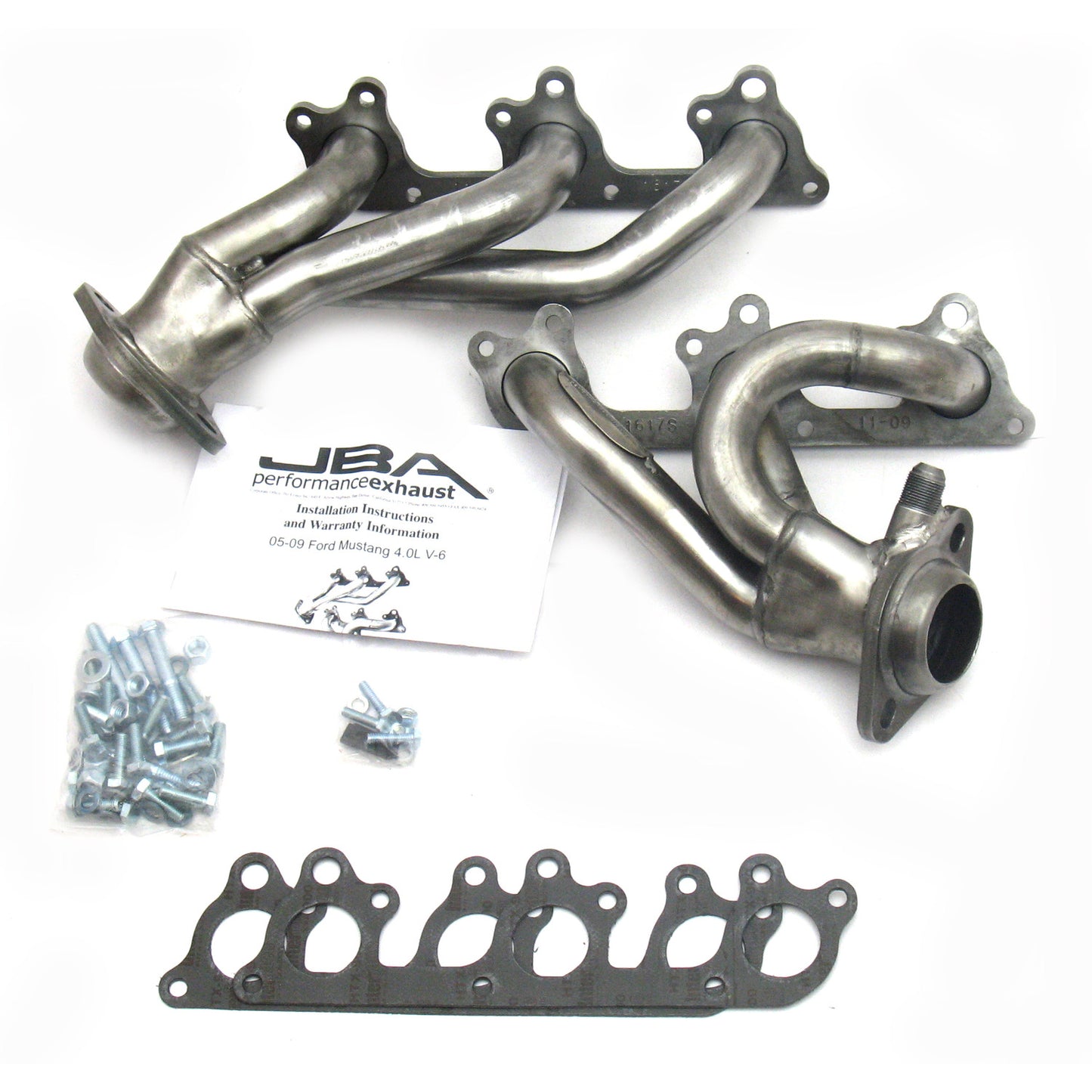 All JBA headers and exhaust products are guaranteed, to the original purchaser, to be free of defects in materials and workmanship for one year. This warranty covers the replacement or repair of the product only and does not cover the cost of removal and installation, customer applied aftermarket coatings or any discoloration or corrosion of finished surfaces. Damage or product failure resulting from collision, improper installation, off-road use, road hazards, the use of exhaust insulating wrap or like products or rust occurring after installation, is not covered by the warranty. The warranty extends only to the original purchaser. Should a part become defective it should be returned to the original selling retailer and must be accompanied with the sales receipt. If there is no retailer in your area, call the factory for a return authorization and return your part prepaid to the factory for inspection. PerTronix reserves the rights to replace or repair the alleged defective part and return the part freight collect.