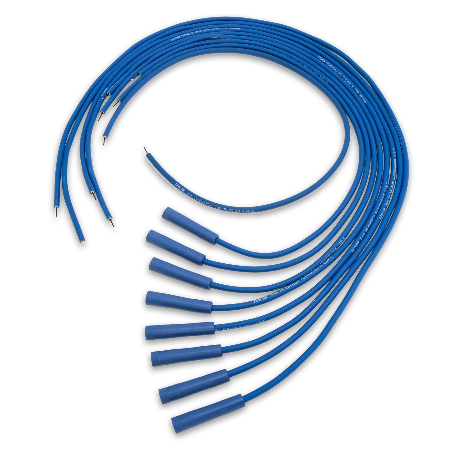 Taylor sets the standard in “High Energy” performance wire. Our High Energy wire is manufactured with an 8.0mm blue high-temperature outer jacket that is oil resistant and assembled with steel double spring locking terminals. 8.0mm High Energy wires are the perfect choice for the daily driver and meet the demands of today’s high-tech ignitions and high under hood temperatures.